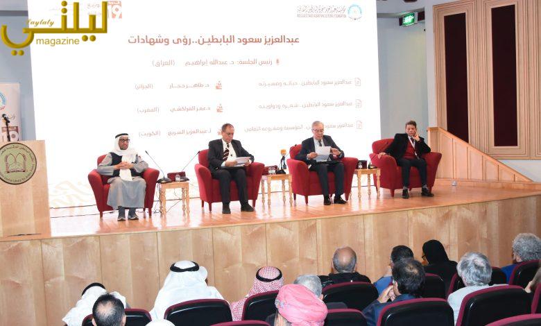 وائز مؤسسة عبدالعزيز سعود البابطين الثقافية للإبداع الشعري جلساتها في الفترة المسائية من اليوم الأول للافتتاح بإقامة جلسة بعنوان “عبدالعزيز البابطين ..رؤى وشهادات” اطرها كلاً من د. طاهر حجار من الجزائر الذي تناول الحديث عن “عبدالعزيز البابطين.. حياته وسيرته” ، بينما حاضر د/ عمر المراكشي من المغرب حول ” عبدالعزيز سعود البابطين ..شعره ودوواينه” وحاضر من الكويت الأديب عبدالعزيز السريع حول “عبدالعزيز سعود البابطين ..المؤسسة ومشروعه الثقافي” وأدار الجلسة باقتدار د.عبدالله إبراهيم من العراق