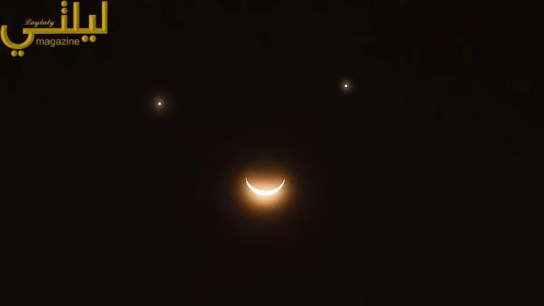وهلال الزُهرة : بسبب قرب الزُهرة من الأرض (نحو 62 مليون كيلومتر) وزاوية إضاءتها، ستظهر كهلالي مضاء بنسبة 23 %. وهذه المرحلة تجعلها تبدو مشابهةً لهلال القمر، مما يخلق تناغمًا بصريًا رائعًا.