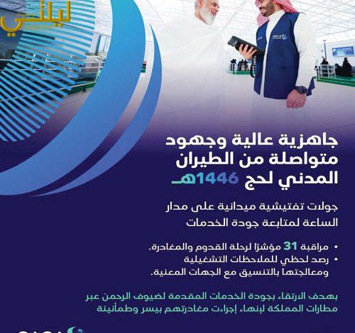 تواصل الهيئة العامة للطيران المدني بالتزامن مع مغادرة ضيوف الرحمن، جهودها الرقابية من قبل فريق متخصص بالرقابة والتفتيش؛ لمتابعة جودة الخدمات المقدمة لضيوف الرحمن من قبل مزودي الخدمة من المطارات والناقلات ومثيلاتها، سعيًا لتقديم تجارب متميزة تسهم في الرقي بتجربة ضيوف الرحمن، ورفع مستويات الرضا.