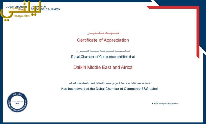 وتتماشى علامة (ESG) من غرفة دبي مع أرقى المعايير العالمية، إذ توفر للشركات إطارًا لتقييم نضجها وتعزيز أدائها في مجال الممارسات البيئية والاجتماعية والحوكمة. ويؤكد هذا التكريم مكانة دايكن الشرق الأوسط وأفريقيا كلاعب رئيسي في تعزيز ممارسات الأعمال المستدامة، والتزامها بتحقيق قيمة طويلة الأمد للأفراد والمجتمعات والبيئة.