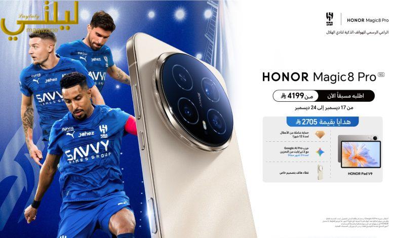 سيحصل العملاء الذين يقومون بالطلب المسبق على هدايا مجانية بقيمة 2705 ريال سعودي، تشمل حماية شاملة من الأعطال لمدة 12 شهر، و HONOR Pad V9، واشتراك 3 أشهر Google AI Pro مع 2 تيرا بايت تخزين، وغطاء هاتف بتصميم خاص. وسيكون هاتف HONOR Magic8 Pro متاحًا للطلب المسبق عبر “قنوات البيع” المعتمدة.
