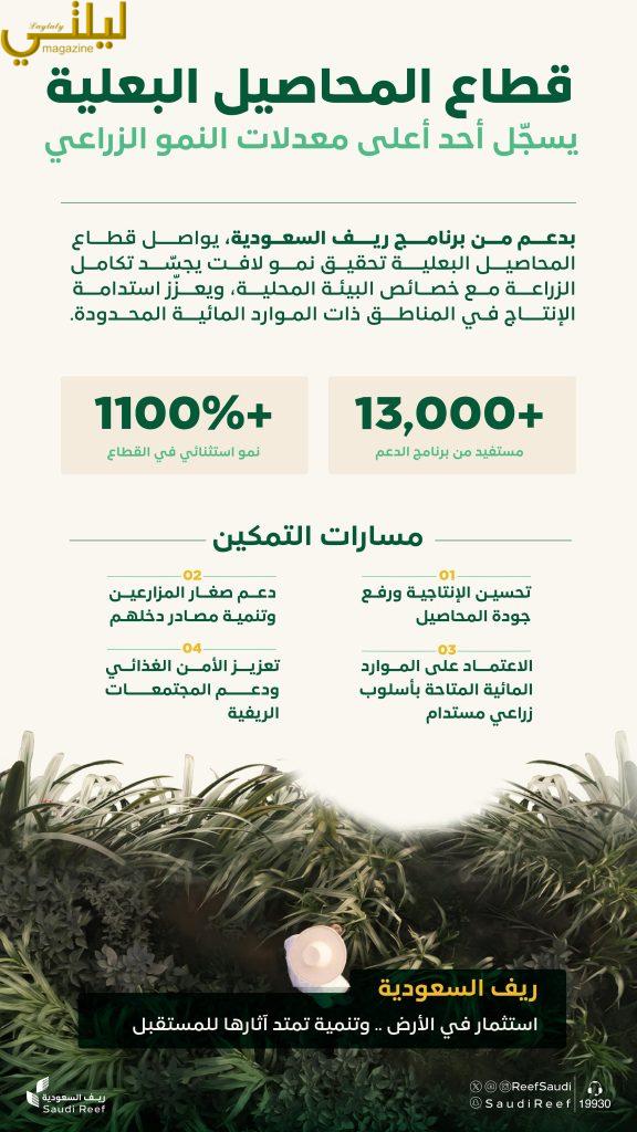 كشف برنامج التنمية الريفية الزراعية المستدامة “ريف السعودية”، عن تحقيق قطاع زراعة المحاصيل البعلية -أحد القطاعات الثمانية التي يدعمها البرنامج -، قفزاتٍ نوعية في خدمية مستفيديه؛ حيث سجّل نموًا قياسيًا تجاوز 1100%، فيما ارتفع عدد المستفيدين من دعم البرنامج للقطاع، إلى أكثر من 13,3 ألف مستفيد في مختلف مناطق المملكة.