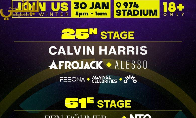 وسيستضيف مسرح 25E الرئيسي كلًا من Feeona وAgainstcelebrities، لينضموا بذلك إلى نخبة من النجوم العالميين الذين تم الإعلان عنهم سابقًا، وهم كالفين هاريس، وأليسو، وأفروجاك، المعروفين بأعمالهم التي تصدرت القوائم العالمية وعروضهم الحية المليئة بالحيوية. وتُعد Feeona منسقة أغانٍ ومنتجة موسيقية مقيمة في الدوحة، وتشتهر بأسلوبها المتنوع الذي يمزج بين موسيقى التكنو والهاوس، في حين يتميز Againstcelebrities بتقديم عروض حماسية مفعمة بالطاقة.